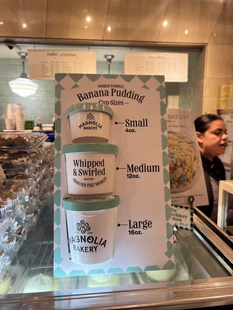Magnolia Bakery has a few different size options depending upon what you are ordering. If sharing with a group I would recommend taking the larger size as the pudding may not last between all of you. As I was ordering by myself the smallest size was more than enough for me personally.