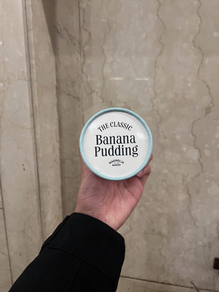 As someone with a massive sweet tooth, I had to try Magnolia Bakery. I had seen numerous posts online about the infamous banana pudding and wanted to see if it was worth the hype. Overall the pudding tasted unique. It wasn’t too sweet with the banana flavor clearly distinguishable. I wish I could have bought more to take back home.