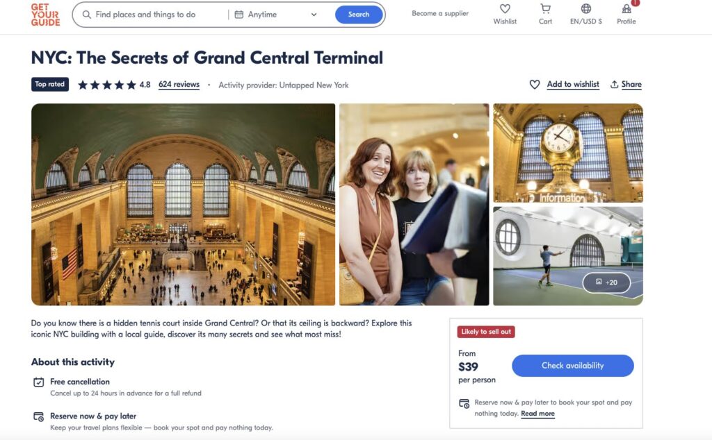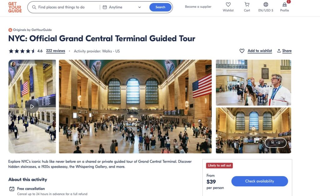 If you do have time available and want to learn more about Grand Central I highly recommend doing a walking tour. Get Your Guide is one of my preferred websites I use when traveling as they have an extremely flexible return and reservation policy